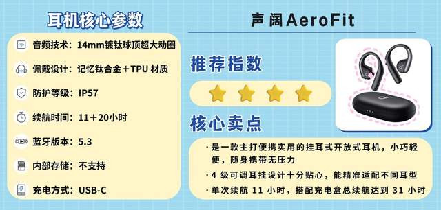 回首来看,声阔AeroFit在便携性、佩戴舒按捺与续航智商上上风杰出,十分符合敬重便携性、对中频发达莫得过高条件的通勤东说念主群与轻畅通爱好者。