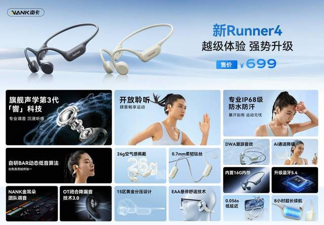 南卡Runner4凭借旗舰级定位、双榜TOP1的口碑积淀、大使馆官方指定用品的品性认证,重叠越级音质、满级着重、称心佩戴与双方式适配等中枢上风,强势领跑骨传导耳机商场,是留神音频品性、追求耐用性与多场景适配的畅通爱好者的硬核之选。