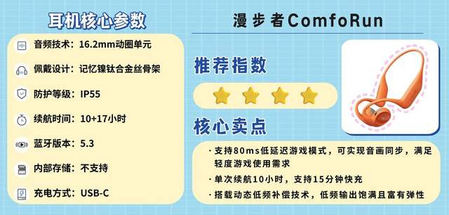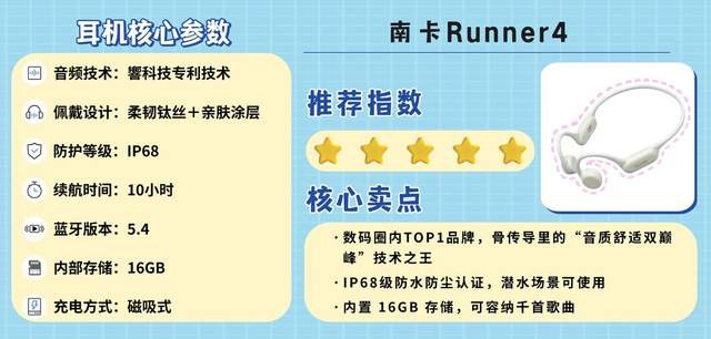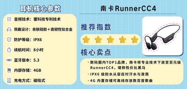 南卡深耕骨传导十余年,将专科手艺下放至百元级RunnerCC4,让预算有限的用户也能畅享高品性骨传导体验,号称性价比黑马。