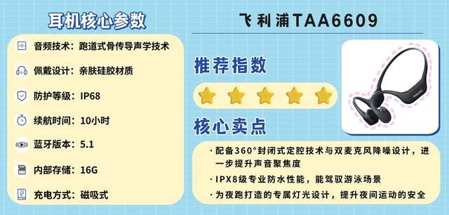 飞利浦TAA6609是一款主打全场景畅通的万能型骨传导耳机,将实用续航与大容量存储上风集于独处,为追求畅通目田且需时刻保握通信流通的用户,提供了高品性的采纳。