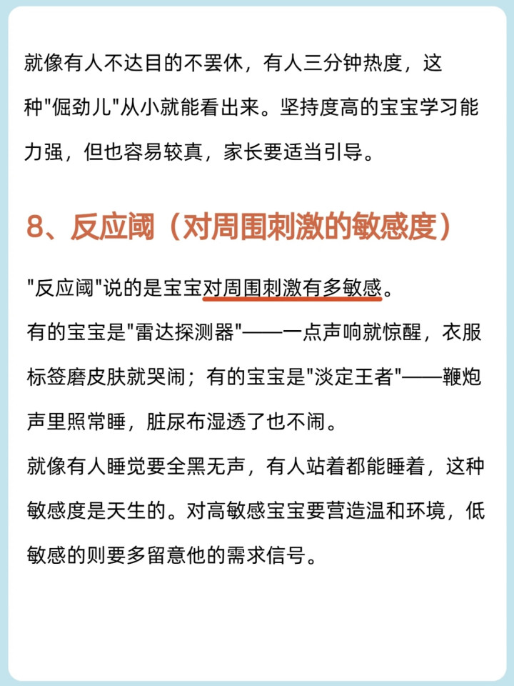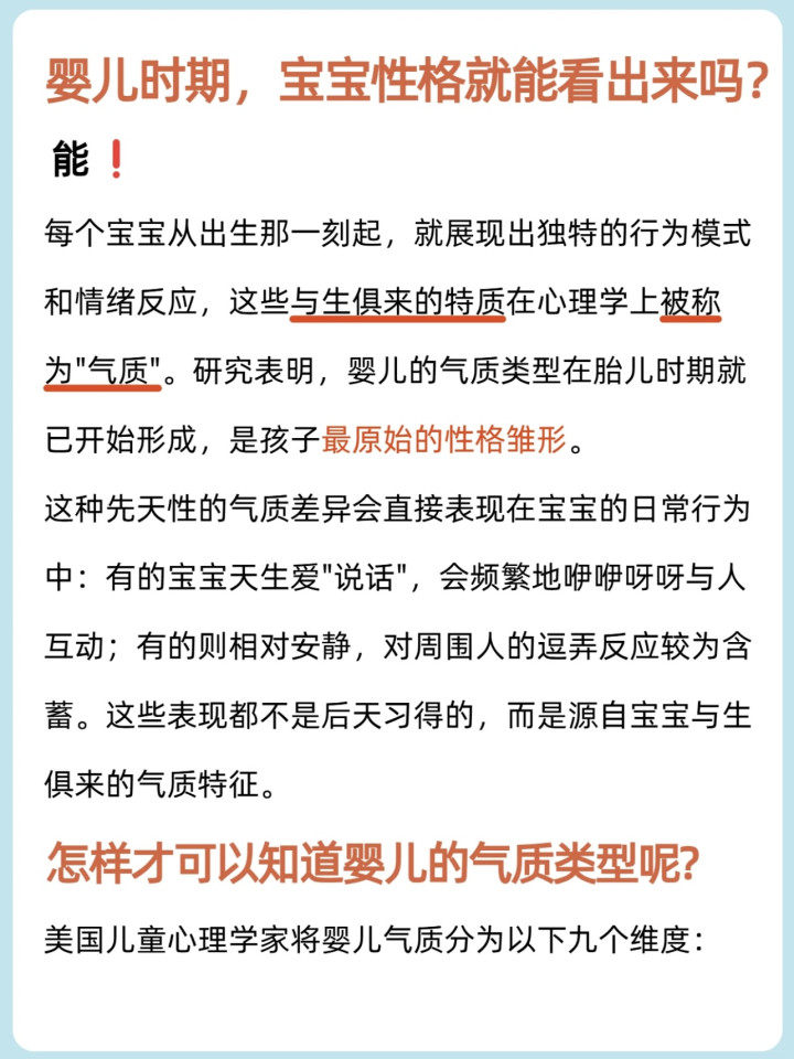 本性是先天+后天的夹杂体,0-1岁的发扬仅仅本性的雏形,3岁前是本性塑造的要害期,家长的评释神情、家庭氛围、成长环境王人会影响最终本性的造成。是以,别急着给宝宝贴标签,用爱和耐烦伴随他成长,你会发现,每个宝宝王人是唯一无二的本性小天神。