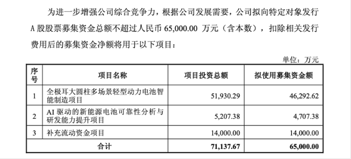 本次召募资金在扣除联系刊行用度后,将主要用于“全极耳大圆柱多场景轻型能源电板智能制造名堂”、“AI运行的新能源电板可靠性分析与研发才调辅助名堂”以及补没收司流动资金。